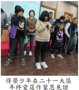首頁 > 職事信息 > 申言主題 > 全地開展、牧養材料 > 聖經學習單 > 讀經拾穗 > 結晶圖表 > 水流交通 > 專項報導 > 召會生活 > 報告事項 > 禱告事項 > 召會生活人數 召會生活 西二照顧區 二十一大區牧養得榮少年的蒙恩 藉着得少教育專案,主為二十一大區的福音開了一扇敞開的門。我們能見證,「身體中同心合意的禱告」與「活力排中同靈同魂的配搭」,是我們牧養得少的兩大祕訣。我們為得少名單一一尋求,在事奉羣組及聚集中交通,並在禱告與扶持下,與活力伴喜樂配搭前往看望、牧養得少家。有一位國二得少患重度憂鬱症,有自殘、輕生的傾向,迫使父母到處求神問卜,全家籠罩在愁雲慘霧下。感謝主,聖徒們藉着豐富的生命教育課程,將神的話與生命帶進這個家中;是神憐憫的心腸,把他們的腳引到平安的路上。 這位得少因着認識神,臉上逐漸有笑容,也更多與弟兄姊妹互動。一次青少年相調聚集中,全家悔改轉向神,接受主的救恩。得救後,聖徒們週週堅定持續牧養這個家,調進當地小區的召會生活;在關懷者陪讀經、享受主話下,得少漸漸穩定參加青少年聚集,並開始學習主日申言及配搭兒童排服事。她受主愛吸引,積極傳福音,邀約她最好的朋友參加青少年聚集。在近期新美區青少年福音聚會中,她的好朋友及媽媽聽完她感人榮耀的見證後,在清水會所一起受浸,將喜樂榮耀歸給神。 ![]() ![]() 南二照顧區 週週福音喜樂傳,尋得二十六年浪子 那是一個假日的午後,我帶着孩子們去健康公園騎單車、玩溜滑梯,玩着玩着,一位穿着「在基督裏」圖案外套的弟兄和我打招呼;和朱弟兄初次的交談,就好像是老朋友一樣。這是神奇妙的安排,因為我和妻子怡秀正為着孩子麥克的成長狀況憂愁沮喪。 二十六年前我在台北市召會受浸,並過甜美豐富的召會生活;後來因着父母親的反對離開了召會。前幾年,父母親陸續在生命終了前,因着姊姊們和弟兄姊妹的關心禱告,奇妙的信主得救了。 而我並沒有回到召會裏,仍是忙於工作,流浪在外。因着孩子的成長瓶頸,一個不知所措的父親,我回到靈裏向主深切的禱告,裏面滿了平安,就和妻子說,需要帶孩子到召會認識神,妻子也說好。 感謝主!猶如路加福音的浪子,神聽了小子的禱告,調度萬有將我帶回神的家!天路、淑芬、靖雯、欣儀等姊妹們,持續接觸關心怡秀和麥克,他們在去年六月二十六日受浸,成為神的兒女,一同享受神家的豐富,也學習事奉神!年幼的妹妹一同在聚會中,享受兒童排的牧養,更喜愛早晨在家裏一起唱詩歌:「良人阿!我只屬於你。佳偶阿!你何等美麗。」讚美主,榮耀歸神! (健康區/魏宗田) ![]() 邀請弟兄姊妹加入並分享以下資源 >台中市召會網站(官網含完整資訊) http://www.citc.org.tw/ >台中市召會聖徒交通(社群) http://bit.ly/2TIYeVX >台中市召會網路資訊中心 Youtube頻道 https://bit.ly/3s2y9Sr >台中市召會科園會所 Youtube頻道 https://bit.ly/3ysUECj >水深之處 http://www.luke54.org/ |