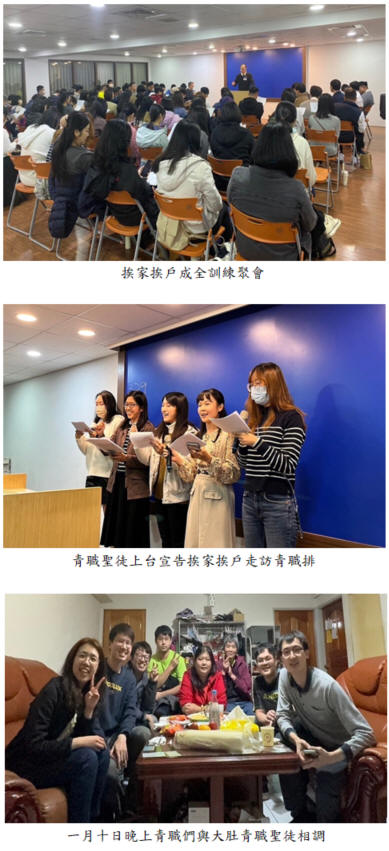 首頁 > 職事信息 > 申言主題 > 全地開展、牧養材料 > 聖經學習單 > 讀經拾穗 > 結晶圖表 > 水流交通 > 專項報導 > 召會生活 > 報告事項 > 禱告事項 > 召會生活人數 專項報導 青職聖徒挨家挨戶成全訓練與實行蒙恩 為着召會的擴增與開展,我們操練活力排,藉着編組成軍,帶着日常生活中經營的基督,實行送會到家,以彼此相顧,激發愛心,勉勵行善。 二〇二四年一月七日主日下午青職組在市政會所舉辦「挨家挨戶」成全訓練。這次約有九十多位聖徒們與會,其中青職約七十位,比上次青職事奉相調交通參加人數多了一倍。在聚會中得加強後,他們挨家挨戶實行活力排,到各家去分享晨興享受主話、追求生命讀經、以及走出去生、養的蒙恩。盼望藉着挨家挨戶的成全訓練,青職聖徒們被基督這新酒所充滿,滿了活力,使召會得建造。 聚會開始,弟兄分享自己從小到大的經歷,聖徒們不計代價,滿帶喜樂看望、牧養他,纔使他在許多的轉彎處,蒙主保守而不失落。當下青職們深受激勵,也樂意被基督這新酒充滿,成為奠祭,把喜樂分給神與人。正如詩歌339首副歌說,「為我荊棘冠冕你肯戴,為我釘死苦架你受害,為你我願獻上我命與我愛,事你愛你到萬代。」 小隊交通時,他們拿到區域內青職排資訊,規畫輪流去不同的青職排,分享蒙恩。雖然要出重大代價,但大家臉上卻滿了喜樂的面容,迫不及待想把蒙恩和喜樂帶到各處青職排裏。聚會末了,各小隊填好實行心願單,輪流上台回應宣告,「主阿,是的,我在這裏,我願意被新酒充滿,到各個地方,請差遣我!」願主祝福他們的擺上,在生命的水流中與主同工,並在三月初全召會事奉特會時,上台分享實行「挨家挨戶」的蒙恩,好激勵眾聖徒一同進入,帶進復興! 在一月十日晚上,第一批弟兄姊妹前去與大肚的青職聖徒相調,這批青職們在探訪後都很喜樂,珍賞各地青職剛強為主站住,也寶貝配搭們的見證。願主繼續加強青職聖徒們挨家挨戶的實行,先被新酒充滿,也將新酒帶給人,使召會中的青職們滿了活力和供應,使主得滿足! ![]() 邀請弟兄姊妹加入並分享以下資源 >台中市召會網站(官網含完整資訊) http://www.citc.org.tw/ >台中市召會聖徒交通(社群) http://bit.ly/2TIYeVX >台中市召會網路資訊中心 Youtube頻道 https://bit.ly/3s2y9Sr >台中市召會科園會所 Youtube頻道 https://bit.ly/3ysUECj >水深之處 http://www.luke54.org/ |