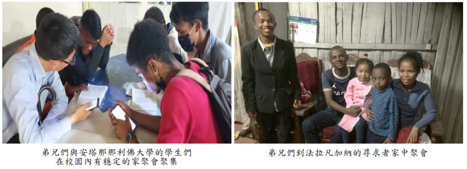 首頁 > 職事信息 > 申言主題 > 全地開展、牧養材料 > 聖經學習單 > 讀經拾穗 > 結晶圖表 > 水流交通 > 專項報導 > 召會生活 > 報告事項 > 禱告事項 > 召會生活人數 專項報導 馬達加斯加五月份開展家書 張弘明弟兄一家的開展蒙恩 這學期我們在安塔那那利佛大學的校園開展,藉着陳明高峰真理得着敞開的學生;此外,我們也針對已接觸許久的在學聖徒,加強一對一的牧養,盼望主在他們身上有進一步的帶領。其中一位大學三年級的弟兄,我們從他一年級時就開始接觸他。牧養他的這一年多,他時常與我們晨興、家聚會,並參加排聚集。過程中,他曾因外面許多環境,從對主的享受中岔出去。這時,主藉着使徒保羅的榜樣題醒我們,保羅如何為着聖徒的緣故,作一位堅定持續乳養的母親,甚至願意將自己完全花費。藉着一次又一次的家聚會,我們更清楚他的屬靈情形,也得知他有心願入住弟兄之家,只是礙於母親盼望他在公會聚會。於是,我們陪他在這件事上向主迫切禱告,求主為他開路。奇妙的是,他自己再一次與母親交通後,母親竟然同意讓他搬進弟兄之家,並過召會生活。讚美主的作為,求主記念他入住大學弟兄之家後,與弟兄們同過團體神人生活,並加強他的心志,在校園裏作主剛強的見證人。 ❖張弘明 葉德偉弟兄一家開展蒙恩 五月二十九日開始,我和菲亞納蘭楚阿召會的弟兄們前往東南部的三個城市:馬納卡拉(Manakara),法拉凡加納(Farafangana)以及萬加因德拉努(Vangaindrano)看望當地的聖徒,並傳揚福音。在四個月前,我們接觸到了一位住在萬加因德拉努的尋求者,他很渴慕主的話,並與我們一同追求雷瑪書報。如今我們已經將《基督徒的基本元素》第一冊和第二冊追求完畢。他非常喜樂再一次見到我們,甚至帶我們去接觸他的同事,也願意帶着同事們和我們一起線上追求。 在前往法拉凡加納的巴士上,我們遇到了一對夫婦,便抓住機會與他們分享主的話。就在準備下車時,他們主動邀約我們到家裏一起享用晚餐;這位先生將他多年的困惑向我們傾訴,他一直在尋求如何活出正常的基督徒生活。他看過許多版本的聖經,也去過許多不同的宗教團體,但始終沒有找到答案。我們就與他分享恢復本聖經和雷瑪書報,也帶他呼求主名。他很喜樂,並且渴慕繼續我們一起追求主話。 在馬納卡拉,已經有十幾位聖徒穩定的享受主。這次菲亞納蘭楚阿的弟兄們拿起開展的負擔,帶着在馬納卡拉的聖徒們去看望和牧養。藉着唱詩、代禱和供應主的話,許多聖徒都被激勵,也要彼此供應基督。願主繼續加強這裏的聖徒們,建立起週週看望和牧養的生活。 ❖葉德偉 代禱事項 一、請為目前入住在大學弟兄姊妹之家的在學聖徒禱告,願意接受更多的成全,在校園中作主剛強明亮的見證人。 二、請為在馬納卡拉,法拉凡加納以及萬加因德拉努所接觸到的尋求者們,更多享受主話禱告。 ![]() 邀請弟兄姊妹加入並分享以下資源 >台中市召會網站(官網含完整資訊) http://www.citc.org.tw/ >台中市召會聖徒交通(社群) http://bit.ly/2TIYeVX >台中市召會網路資訊中心 Youtube頻道 https://bit.ly/3s2y9Sr >台中市召會科園會所 Youtube頻道 https://bit.ly/3ysUECj >水深之處 http://www.luke54.org/ |