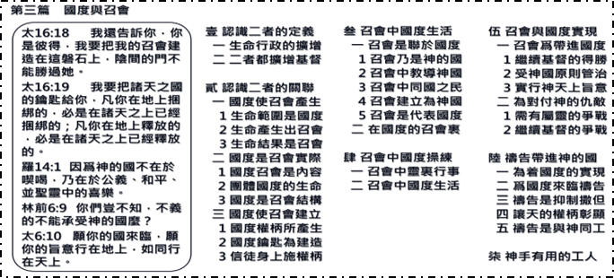 首頁 > 職事信息 > 申言主題 > 全地開展、牧養材料 > 聖經學習單 > 讀經拾穗 > 結晶圖表 > 水流交通 > 專項報導 > 召會生活 > 報告事項 > 禱告事項 > 召會生活人數 結晶圖表 國度與召會都是基督的擴增,國度是為着召會的產生、實際與建立,為着國度的實現需有國度的實際。 (建議看此圖時手機橫拿觀看)聖經學習單答案: 1、膀臂、能力; 2、報佳音、平安、報好信、救恩。 邀請弟兄姊妹加入並分享以下資源 >台中市召會網站(官網含完整資訊) http://www.citc.org.tw/ >台中市召會聖徒交通(社群) http://bit.ly/2TIYeVX >台中市召會網路資訊中心 Youtube頻道 https://bit.ly/3s2y9Sr >台中市召會科園會所 Youtube頻道 https://bit.ly/3ysUECj >水深之處 http://www.luke54.org/ |