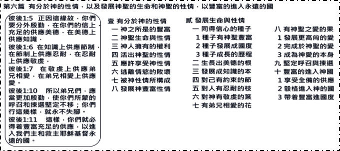 首頁 > 職事信息 > 申言主題 > 全地開展、牧養材料 > 聖經學習單 > 讀經拾穗 > 結晶圖表 > 水流交通 > 專項報導 > 召會生活 > 報告事項 > 禱告事項 > 召會生活人數 結晶圖表 神的行政是要人有分祂的性情,因此需逃離情慾的敗壞,殷勤發展神聖生命性情,豐富的進入永遠的國。 (建議看此圖時手機橫拿觀看)聖經學習單答案: 1、活水的泉源、破裂不能存水的池子; 2、幼年的恩愛、新婚的愛情。 邀請弟兄姊妹加入並分享以下資源 >台中市召會網站(官網含完整資訊) http://www.citc.org.tw/ >台中市召會聖徒交通(社群) http://bit.ly/2TIYeVX >台中市召會網路資訊中心 Youtube頻道 https://bit.ly/3s2y9Sr >台中市召會科園會所 Youtube頻道 https://bit.ly/3ysUECj >水深之處 http://www.luke54.org/ |