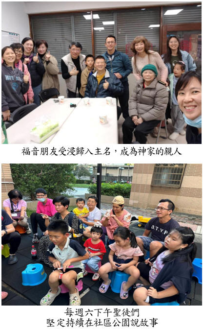 首頁 > 職事信息 > 申言主題 > 全地開展、牧養材料 > 聖經學習單 > 讀經拾穗 > 結晶圖表 > 水流交通 > 專項報導 > 召會生活 > 報告事項 > 禱告事項 > 召會生活人數 召會生活 北二照顧區 東勢開展蒙恩 「他們週週出外訪人,一點也不覺得叩門是難事。我們如果肯學習、操練並進入,就不覺得難;越不操練,越不進入,纔會越想越難。聖經裏也明白的啟示,出外訪人是神所命定的路,因此我們更該好好實行。」(基督身體生機的建造,第三章。) 東勢區於三月二日開始主日會後出訪的實行,第一次出訪就有十二位聖徒一同配搭。聖徒們為着出訪已禱告許久,盼望能彀建立福音的架構,恢復週週出訪的習慣。為着出訪,我們事先劃定出訪區塊、方式和時間,選定離會所最近的福隆里,以挨家挨戶叩門的方式訪人。為了讓更多聖徒都能參與,時間規畫為三十分鐘。每次出訪前,我們都同心合意爭戰禱告,在靈裏充滿信心,知道主已將這地的人賜給我們。 聖徒們分享,藉着出訪得着恢復與活力,並且發現實行起來並不困難。從三月初開始,許多聖徒持續參與,每週堅定持續地出訪。主祝福這樣的行動,幾乎每週都有人願意留下聯絡資料,成為可再回訪的名單。我們盼望有更多聖徒一同配搭進來,建立週週出訪的習慣,並藉着約喫飯與家聚會,進一步牧養人、使人得救。願福音在這地不斷向外擴展,將更多得救的人加給祂的召會! ![]() 中三照顧區 三十大區公園福音見證 馬太福音五章十六節:「你們的光也當這樣照在人前,叫他們看見你們的好行為,就榮耀你們在諸天之上的父。」感謝主,三十大區的公園福音行動,在聖徒們週週配搭與同心合意的禱告中,許多兒童與家長得以穩定前來參加。 其中有一個家,孩子和爸爸對我們非常敞開,也曾一同參加兒童親子日的外出相調。今年一月一日,我們在社區樓下巧遇這位爸爸,發現他的氣色非常不好,關心之下得知,他因主動脈剝離,去年十二月緊急送醫並接受手術,雖已出院,但身體仍非常虛弱。我們實在摸着這是主所豫備的時機與救恩,為要尋回一切需要的人。於是我們便約定在那週公園福音結束後前往他家探訪,對方也敞開地答應了! 感謝主奇妙的安排,我們當中正好有兩位配搭的弟兄是醫生,其中一位更是心臟專科醫師。當天公園福音結束後,這位爸爸親自到樓下來接我們,藉着兩位醫師弟兄專業的建議與安慰,他更加安心,向我們更敞開。弟兄姊妹們也一同為着他的身體復原禱告,把握機會再次向他傳福音。 感謝主!這位爸爸就在那天單純敞開地接受神,受浸歸入主名,成為神家的親人!最近他也開始參加週五晚上的兒童排,實在是太喜樂了!願主持續祝福我們的行動,將基督供應給人,福音傳遍居人之地,榮耀歸主! ![]() 邀請弟兄姊妹加入並分享以下資源 >台中市召會網站(官網含完整資訊) http://www.citc.org.tw/ >台中市召會聖徒交通(社群) http://bit.ly/2TIYeVX >台中市召會網路資訊中心 Youtube頻道 https://bit.ly/3s2y9Sr >台中市召會科園會所 Youtube頻道 https://bit.ly/3ysUECj >水深之處 http://www.luke54.org/ |