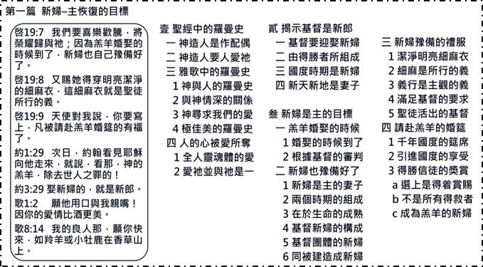 首頁 > 職事信息 > 申言主題 > 全地開展、牧養材料 > 聖經學習單 > 讀經拾穗 > 結晶圖表 > 水流交通 > 專項報導 > 召會生活 > 報告事項 > 禱告事項 > 召會生活人數 結晶圖表 聖經啓示神與人的羅曼史,基督是新郎要迎娶新婦,新婦是由團體得勝者組成,這是主恢復今日的目標。 (建議看此圖時手機橫拿觀看)聖經學習單答案: 1、罪孽、遷徙; 2、永遠、寶座; 3、忘記、離棄。 邀請弟兄姊妹加入並分享以下資源 >台中市召會網站(官網含完整資訊) http://www.citc.org.tw/ >台中市召會聖徒交通(社群) http://bit.ly/2TIYeVX >台中市召會網路資訊中心 Youtube頻道 https://bit.ly/3s2y9Sr >台中市召會科園會所 Youtube頻道 https://bit.ly/3ysUECj >水深之處 http://www.luke54.org/ |