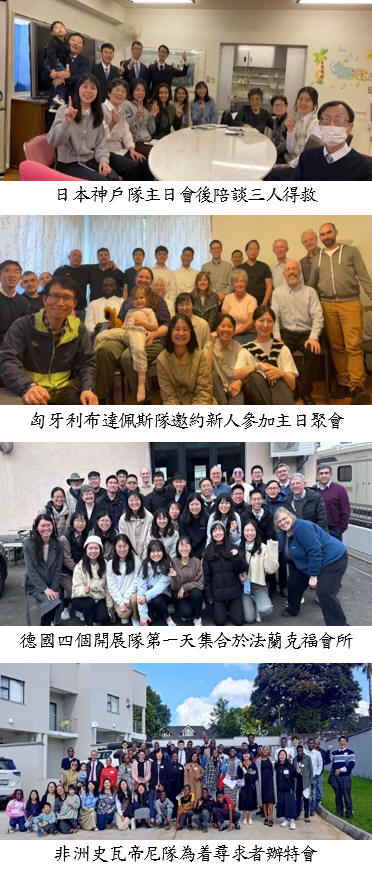 首頁 > 職事信息 > 申言主題 > 全地開展、牧養材料 > 聖經學習單 > 讀經拾穗 > 結晶圖表 > 水流交通 > 專項報導 > 召會生活 > 報告事項 > 禱告事項 > 召會生活人數 海外開展 一道水流,惟有基督 台灣福音工作全時間訓練海外開展於二〇二五年三月三十一日至五月二日展開。二年級學員共九十位,分成十五隊,前往歐洲、亞洲、非洲三大洲的九個國家,日本、柬埔寨、匈牙利、德國、西班牙、葡萄牙、愛爾蘭、英國、史瓦帝尼,成為使徒行傳的繼續-基督團體的繼續。五月七日有海外開展見證聚會,三十九位聖徒實體與會,二百二十四位線上與會,眾召會藉此有分於學員在全地推廣福音的交通與見證。 本次亞洲有七隊,柬埔寨四隊、日本三隊。原定兩隊前往印度開展,因政局動盪改至柬埔寨。赴斯里蘭卡的隊伍也改至日本仙台。變動中,學員們不受打岔,帶着奉獻的靈剛強開拓。在柬埔寨開展的學員見證,外在環境雖艱難,但神是不偏待人的,國度的福音仍要傳遍居人之地。雖然學員的傳講與聖徒繙譯的內容偶有出入,仍有人受浸。因眾人都操練靈,將自己禱告到同一道水流裏,那靈就衝破一切限制。 在日本開展的學員見證,由於當地基督徒比例不到百分之一,因此人人都需以百分之一百二十拚上的靈,積極傳揚福音,藉着禱告、那靈與話,加上和聖徒們甜美的配搭,關西地區在這五週內帶了四十三位受浸得救。 另外,有七隊學員至歐洲開展,德國有四隊、愛爾蘭一隊、伊比利半島一隊、匈牙利一隊。在德國,學員們發放並使用恢復本聖經,向人陳明解開的真理,使人被主話吸引並被抓住。當地許多聖徒見證,如何進到主的恢復,其中有對夫婦尋求了三十年,後來在馬路上收到恢復本聖經,他們如獲至寶,與聖徒相調後,感覺自己回到家了。 西班牙開展隊分享,開展時接觸到一位姊妹並邀她參加小排聚集,她被解開的話語吸引,一週後一同傳福音並主動向新人推薦恢復本聖經。吸引人的正是這寶貴的職事。 在愛爾蘭開展的學員見證,這個國家雖有基督教背景,人卻不認識神的經綸,不知道人有靈以及基督是賜生命的靈。當他們向人分享聖經,啓示這位神是可喫、可喝、可享受的一位,就有人願意從宗教的光景出來,開始過喫、喝、享受主的生活。匈牙利開展隊則在這五週期間成立校園讀經小排,藉着禱告、交通,眾人就被調到同一個感覺裏。開展前,大家願意敞開自己的感覺和負擔,之後就一起禱告仰望主,禱告完再有交通。交通又禱告,禱告再交通,過程中也學習留意聖靈的引導。這次開展有許多時間和聖徒們禱告、交通,真是太有價值了! 在非洲,學員們原要前往辛巴威,後因局勢變遷改至史瓦帝尼。原來史瓦帝尼的聖徒為有人來開展,已迫切禱告多年。學員們見證,人的心向職事的豐富完全敞開,聽見高峰真理時眼睛發光並被話征服。他們有尋求、愛慕真理的心,當一位姊妹認識調和的靈,並知道她能與主是一靈,就深受感動,禱告中不住的感謝讚美神。開展末了,聖徒與學員一同舉辦特會,分享神永遠的經綸與神完整的救恩,許多人被這話抓住,並寶貝這職事的豐富。 末了,弟兄們題到這次海外開展,我們受到許多榜樣的激勵,也經歷一個新人的配搭。許多聖徒在艱難中仍忠信事奉主,見證生命的暗流正在推動主恢復的擴展。在配搭中,我們超越語言、文化的限制,經歷惟有基督是一切,又在一切之內,與各地聖徒真實建造。如今全地盡是饑餓人羣,需你我分賜基督富餘。我們要繼續走上這條被構成的路,好能帶着職事的豐富,將高峰的真理傳到全地。願我們都能說:「我故此沒有違背那從天上來的異象」,將自己完全擺進這份職事中,成為主行動的祝福與見證。(轉載自台北市召會週訊第1398期。) ![]() 邀請弟兄姊妹加入並分享以下資源 >台中市召會網站(官網含完整資訊) http://www.citc.org.tw/ >台中市召會聖徒交通(社群) http://bit.ly/2TIYeVX >台中市召會網路資訊中心 Youtube頻道 https://bit.ly/3s2y9Sr >台中市召會科園會所 Youtube頻道 https://bit.ly/3ysUECj >水深之處 http://www.luke54.org/ |