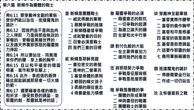 首頁 > 職事信息 > 申言主題 > 全地開展、牧養材料 > 聖經學習單 > 讀經拾穗 > 結晶圖表 > 水流交通 > 專項報導 > 召會生活 > 報告事項 > 禱告事項 > 召會生活人數 結晶圖表 主恢復的目標是產生新婦,成為神的兩營軍兵,為了從事屬靈的爭戰,需穿戴神全副軍裝以征服仇敵。 (建議看此圖時手機橫拿觀看)聖經學習單答案: 1、火、金銀合金; 2、新靈、石心、肉心。 邀請弟兄姊妹加入並分享以下資源 >台中市召會網站(官網含完整資訊) http://www.citc.org.tw/ >台中市召會聖徒交通(社群) http://bit.ly/2TIYeVX >台中市召會網路資訊中心 Youtube頻道 https://bit.ly/3s2y9Sr >台中市召會科園會所 Youtube頻道 https://bit.ly/3ysUECj >水深之處 http://www.luke54.org/ |