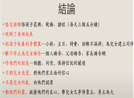 首頁 > 職事信息 > 申言主題 > 金門開展 > 聖經學習單 > 讀經拾穗 > 結晶圖表 > 專項報導 專項報導 兒童家長座談-重溫牧養異象 建立家庭祭壇(四) 去年六月三日,兒童組舉辦線上兒童家長座談,主題為「重溫牧養異象,建立家庭祭壇」。會中邀請江奇榮弟兄夫婦,分享他們牧養兒女的見證。線上共計一百五十個單位參與,聚會中滿有主的同在、膏抹及說話,以下為江弟兄夫婦的交通: (江姊妹)結論是,第一,一定要堅定持續。職業婦女工作了一天,很忙碌也很累,沒有時間、沒有體力,家庭時光有這麼重要麼?親愛的家長,我們花這麼多時間在世界,卻不願意花個五分鐘陪伴自己的兒女。「今天不陪,將來一定賠」,我們至少陪孩子早上五分鐘晨興,晚上五分鐘讀經、五分鐘禱告;少滑手機,少在心思裏,給孩子三個五分鐘。不管再怎麼忙,這個投資一定要花,一定要堅定持續。 第二,跌倒了再爬起來。我們可能有一天輭弱,今天忘記陪,沒關係,我們抓住每個今天來陪孩子。 第三,把孩子牧養到身體裏。不要覺得作父母的是無所不能的,父母是非常有限的,弟兄姊妹的牧養不能取代父母的牧養,但父母不是萬能的,我們一定要把孩子服事到身體裏,建立小排、主日、特會、訓練,絕對不要漏掉;爲兒女建立同伴,我自己的經歷,孩子的許多關口,都是在特會(包含親子園、青少年特會訓練)的說話、人物榜樣中過關的。有一次孩子去同學家,回來就生氣的對我說:「爲甚麼同學可以住漂亮的房子,又有手機、平板?你們爲甚麼要放下職業全時間?」當下我流淚,在校園禱告兩小時後,將我們如何看見異象、並放下職業走主道路的歷程告訴孩子,孩子也流淚寫信認罪,信中題到:「這一切都會過去,基督纔是至寶。」父母親當然要成為榜樣,但孩子也需要身體、弟兄姊妹的榜樣。藉着一次次的特會訓練,孩子看見許多榜樣,如同雲彩圍繞,就會激勵孩子的信心。我們ㄧ定要很堅實、奮力的把孩子服事到水流中,絕對不能漏掉。 特別是第四,斷不停止為兒女禱告。許多弟兄姊妹題到:「我的孩子不想聚會、對主的話沒有胃口」。我們從孩子嬰幼兒時期就要陪,因為屬靈胃口不是一朝ㄧ夕就成,是需要培養的;植物三天不澆水,就會枯乾,何況孩子,幾天沒有用主的話澆灌,他的靈就枯乾了。再來,我們面對的是廣大世代的洪流,我們怎麼力挽狂瀾?首先,孩子們ㄧ定要在方舟裏面,否則只會隨波逐流。其次,我們一定要禱告,我們絕對不是與血肉之人摔跤,特別是孩子在青少年時期使用手機的事上。我們一直沒有給孩子手機,孩子看到同學們都有手機,我們就知道我們在和這廣大世界的洪流爭戰。所以我們一定要有禱告的生活:個人的禱告、父母同心合意的禱告,甚至需要有媽媽、家長的禱告網,爲孩子守望、題名具體的禱告。禱告能挽回、保守他們,使孩子們在洪流站立的住,一次一次的禱告,孩子就一次一次的過關。孩子不是完美的,不是天生就符合神的要求,但是你會發現,他們會轉的,一次一次的回來後,他們就更往前。 第五,作他們的朋友,傾聽、同情,保持信託的關係太重要了。不要因着堅持某些事情,而與孩子的關係僵化,就沒路了,我們孩子之間的關係該是甜美的。 再來是第六,永遠不要對孩子失望,不要覺得:孩子怎麼都不聚會、讀經。我們要對孩子有正面的信心,在主面前常常珍賞他們,要稱讚,不要咒詛。我們若咒詛他們,我們就受咒詛,一定要常常讚美。我自己孩子到了青少年時期,我常覺得:「主阿!我爲甚麼會有這樣的孩子?」主就責備、光照我,孩子是神的產業和傑作,永遠不要對孩子失望。 ![]() 邀請弟兄姊妹加入並分享以下資源 >台中市召會網站(官網含完整資訊) http://www.citc.org.tw/ >台中市召會聖徒交通(社群) http://bit.ly/2TIYeVX >台中市召會網路資訊中心 Youtube頻道 https://bit.ly/3s2y9Sr >台中市召會科園會所 Youtube頻道 https://bit.ly/3ysUECj >水深之處 http://www.luke54.org/ |