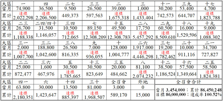 首頁 > 職事信息 > 申言主題 > 高峰真理 > 聖經學習單 > 讀經拾穗 > 結晶圖表 > 水流交通 > 專項報導 > 召會生活 > 報告事項 > 禱告事項 > 召會生活人數 報告事項 一、「高峰真理」信息,本週進度: 神聖啓示的高峰信息合集第八冊(文集第一冊)「羅馬書結晶讀經」第二十六章及《神經綸的總綱與神人該有的生活(會3073)》(文集第一冊)「神經綸的總綱與神人該有的生活」第一至六篇。 二、晨興追求進度: 自4/11起,以三週時間追求2022年國際華語特會信息,總題:在神經綸中神的恩典。追求進度:【第一週】第一篇;【第二週】第二、三篇;【第三週】第四、五篇。請弟兄姊妹提早備書。 三、二〇二二年全台眾召會事奉相調特會: 1、時間:4/15(五)晚上7:00~9:30;4/16(六)上午9:00~11:30,下午3:30~6:00,晚上7:00~9:00。 2、方式:以照顧區或大區為單位集中(人數至少20位)實體聚會。 3、報名方式:請於4/10(主日)前,登錄「召會生活人數系統」,設定報名資料。 四、軍功會所三月份奉獻月報表: ![]() 五、青少年組: 1、晨興進度:《聖經之旅》第一冊第六課。 2、青少年期中成全:4/9(六)上午9:00~11:00於科園會所舉行。盼鼓勵青少年參加,好在各區、各校園成全出更多中幹,背負見證、承擔託付。 3、青少年四技二專統一入學測驗(4/30~5/1)代禱名單:陳榮光、何權洋、姜昱伸、黃靖雯、吳安琪、劉澔謙、廖容慈、曾宥齊、李慕新、黃裕庭、張永翰、方志揚、賴暉俊、侯以樂、廖珈妤、張詠馨、郭翰倫、李宇晨。若名單有錯誤及缺漏,請與青少年組陳佑豪弟兄(0988-680775)聯絡。 六、大專組: 1、大專聖徒高峰真理追求展覽聚會第二場:將於4/23(六)上午9:30~11:00在軍功會所舉行。展覽內容:神聖啓示的高峰合輯第八冊。 2、大學外語學生相調聚集:每主日在復興大樓五樓,12:30~13:30午餐、13:30~14:30相調聚會。 七、兒童組: 為着今年台中上半年達到750位兒童,為此有以下幾點盼望弟兄姊妹們配合: 1、落實點名:各小區每週確實將兒童的「家聚會受訪」、「兒童排」、及「主日」項目點齊。公園福音的兒童可以點「家聚會受訪」;如有需要,兒童服事組可以協助各大區在點名系統建立「公園福音」的點名架構,一面為着落實點名,另一面也讓各區得到的名單牧養在各區。 2、各區可藉着公園福音、送會到家、打開家或在各區辦親子相調活動,多方並大量接觸兒童家。 3、定期事奉交通:盼望各區(排)有定期兒童工作事奉交通,推動並落實負擔。 邀請弟兄姊妹加入並分享以下資源 >台中市召會網站(官網含完整資訊) http://www.citc.org.tw/ >台中市召會聖徒交通(社群) http://bit.ly/2TIYeVX >台中市召會網路資訊中心 Youtube頻道 https://bit.ly/3s2y9Sr >台中市召會科園會所 Youtube頻道 https://bit.ly/3ysUECj >水深之處 http://www.luke54.org/ |
