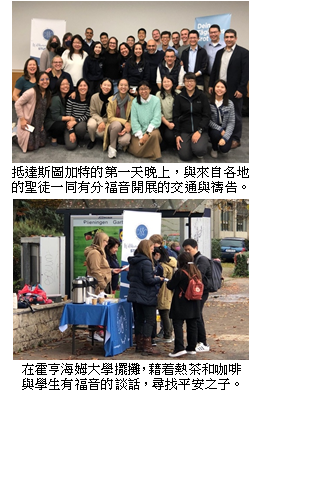 首頁 > 職事信息 > 申言主題 > 全地開展、牧養材料 > 聖經學習單 > 讀經拾穗 > 結晶圖表 > 水流交通 > 專項報導 > 召會生活 > 報告事項 > 禱告事項 > 召會生活人數 全地開展 二○二二年十月德國斯圖加特(Stuttgart)校園福音開展(一) 德國和瑞士的眾召會呼召各地聖徒,在十月份大學開學之際一同有分校園福音行動,得着德國和瑞士的青年人成為常存的果子,擴展主的見證。為此,臺中市召會差派陳民敏和陳韋禎兩位姊妹前去德國斯圖加特和圖賓根兩個城市開展,有分身體的行動。以下是第一週的報導: 第一週我們來到位於德國西南部的大城市-斯圖加特。我們主要在兩所大學傳福音,一所是斯圖加特大學,另一所是霍恩海姆大學。這週是大學的新生豫備週,從各地前來的聖徒與當地的學生、社區聖徒在斯圖加特大學的Vaihingen、Stadtmitte校區及霍恩海姆大學擺攤接觸新生。談話間,真正尋求者就向我們顯明出來。有位新生主動前來攤位,聽完傳講後,就分享她對主的經歷,並表示她正在找召會。當她來聚會時,她說她像回到家一樣,享受聖徒的顧惜以及主話的供應。另有一位韓國弟兄見證,當他遇見一位曾在韓國工作的新生,便立刻上前與他分享人生的奧祕,並留下名單。他喜樂地向他說:「也許我搭這麼久的飛機來,就是為了遇見你!」 相較於斯圖加特大學,霍恩海姆大學人數較少,近年來一直缺乏學生聖徒。在聖徒們迫切禱告下,信實的主使一位新生向我們敞開,答應參加福音相調,甚至與姊妹開始三十天讀完一卷聖經。 我們不僅在校園中接觸新生,也到車站、商場旁發送免費恢復本聖經,一句「Kostenlose Bibel!」(「免費聖經!」)讓不少當地人停下腳步。我們喜樂地與人們分享這本解開的聖經,陳明其屬靈的豐富,不論是綱要或註解都叫當地人眼睛一亮,樂意領本聖經回家享受!(未完待續) ![]() 聖經(一) 一、禱告主的話 提後三16:「聖經都是神的呼出,對於教訓、督責、改正、在義上的教導,都是有益的。」 二、享受職事信息 美國前總統林肯曾說,「聖經是神賜給人類最好的禮物。」它是世上最廣泛為人閱讀的書,已譯成盈千語言,超過世間羣籍。每遇患難、彷徨,人就紛紛轉向聖經,尋求安慰、盼望和指引。「聖經」(Bible)一辭是字來自希臘文biblos,意思是「那書」(the book)。這指明聖經是世上書中「那」獨一的書。 聖經與其他一切的書所以不同,乃因它的本質是神聖的。聖經乃是神的呼出。(提後三16。)這告訴我們,聖經是神藉着祂的靈,將祂的思想和祂的話,呼入聖經的作者,並從他們裏面呼出來。因此,聖經包含神的元素,帶着祂的香氣。基督徒最大的喜樂和祝福,就是能彀每天接觸神,藉着祂呼出的話品嘗祂。(神經綸的福音-聖經,一至三、六至九、一三、一五至一六、一八至二○頁。) 三、歡唱詩歌(詩581首,第四節) 你是生命之靈,你又是話,這話因靈豐盛,無以復加; 藉你內住之靈摸着這話,你就將你豐盛向我賜下。 四、為彼此健康、工作、家人代禱 邀請弟兄姊妹加入並分享以下資源 >台中市召會網站(官網含完整資訊) http://www.citc.org.tw/ >台中市召會聖徒交通(社群) http://bit.ly/2TIYeVX >台中市召會網路資訊中心 Youtube頻道 https://bit.ly/3s2y9Sr >台中市召會科園會所 Youtube頻道 https://bit.ly/3ysUECj >水深之處 http://www.luke54.org/ |